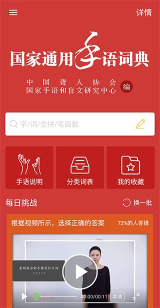 一款提供线上手语学习的应用软件,软件支持用户在线进行轻松的学习,便捷的观看里面的视频,这里详细的图文并茂展示可以全面的掌握,丰富的词典也可以在线进行智能查询,高效的进行规范的学习掌握。