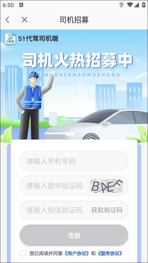 3、接着就会打开【司机招募】页面,在该页面下输入手机号和验证码,并勾选同意协议后点击【立即加入】