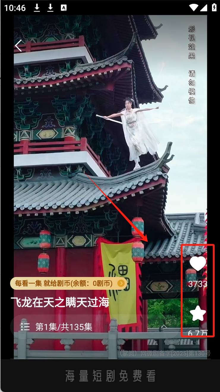 2、点击短剧封面进入播放页面并点赞。