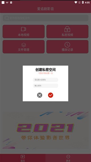 2、用户点击私密视频可以创建私密空间