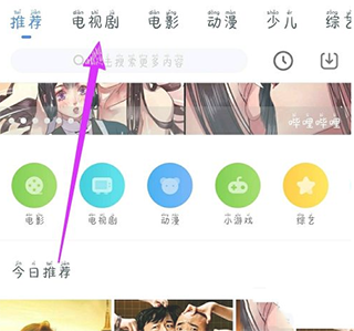 1、点击主页上方菜单中的【电视剧】。