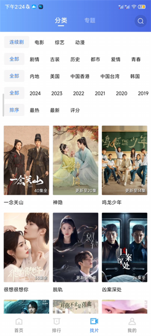 2、在找片界面大家可以根据分类或是专题寻找自己想要的影视资源;
