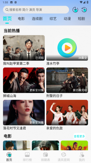 清风影视app正版是一款非常好用的影视播放软件,软件整合了全网多个影视平台上的影视资源,使得这里的影视资源不仅丰富多样,而且还拥有多个播放源,能够轻松满足每一位用户的影视需求。值得一提的是,每个播放源还有各自的播放画质,如高清、超清、蓝光、4k等画质,让用户可以根据自身的网络情况来自由选择。在软件中用户可以使用的功能超级多,包括搜索、下载、投屏、收藏、续播等功能,在这些功能的帮助下,用户的观影之旅会更加顺畅,就拿搜索功能来讲,通过搜索功能用户可以直接搜索出自己知道名称的影视作品。另外,清风影视app正版加入了排期表,通过排期表用户可以清楚知道新剧的更新时间,使自己能够第一时间观看到,不会慢人一步。