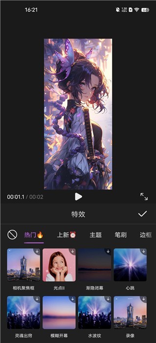 1、丰富的贴纸、特效、动画、转场等视频编辑素材;