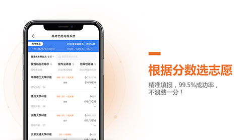 应用会根据您的需求,提供多种院校及专业选择,并大大降低失误率,让您更加轻松安心地完成志愿填报。
