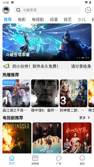 1、软件包括热门、推荐、电视剧、电影、综艺和动画等多种分类,根据自己的喜好选择。