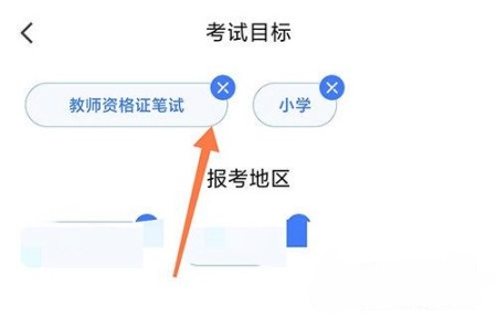 2、进入考试目标页面,点击第一个目标的×按钮;