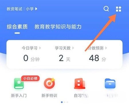 1、首先打开粉笔教师,进入练习版块,点击右上角的四个方块按钮;