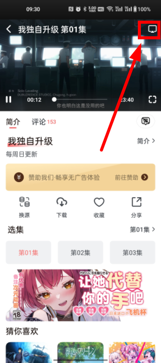2、找到之后点击播放,待动漫正式播放后,我们选择点击右上角的投屏设置即可投屏。