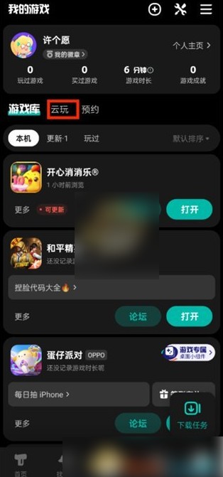 2、然后在我的游戏的页面中我们需要切换到【云玩】的页面;