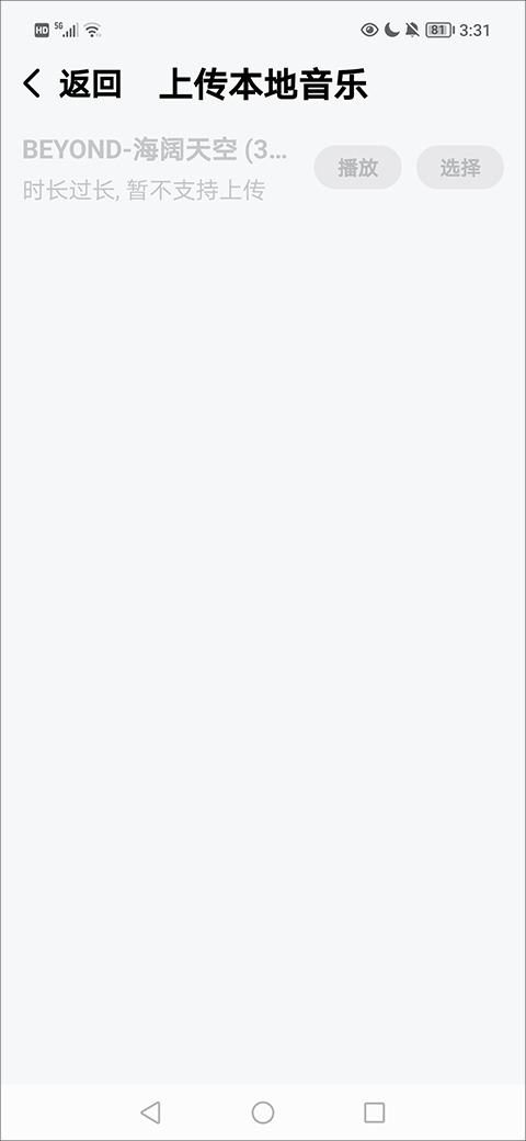 3、然后在经过扫描后,软件就会在上传本地音乐界面显示可以和不可以上传的本地音乐。