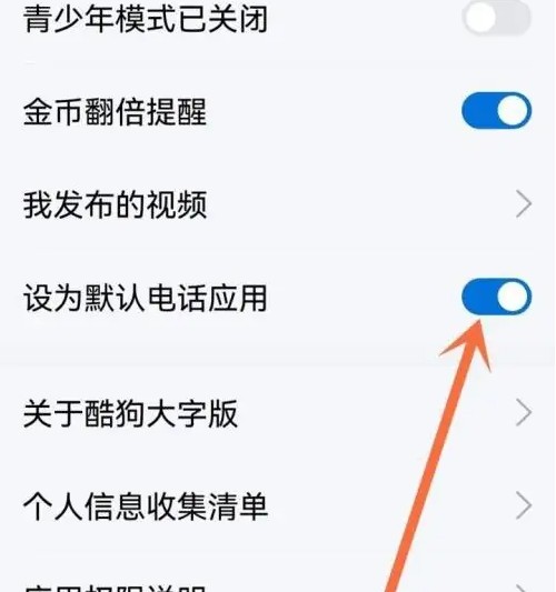 点击“设为默认电话应用”右侧开关按钮。