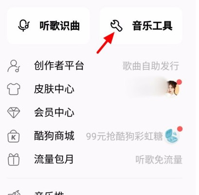 在菜单页面,点击音乐工具;