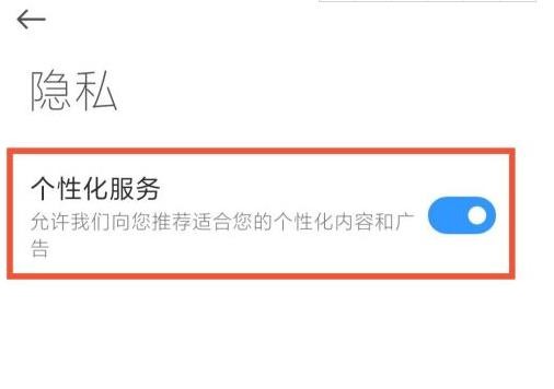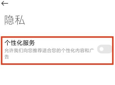 5、最后关闭个性化服务的滚轮,如图所示,即可完成应用商店广告的关闭。