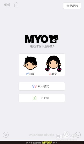 在第一次打开MYOTee脸萌软件的时候是一个选择对话框,选择的内容是‘男’和‘女’,如果是情侣,可以选择双人模式。此处以帅哥为例。