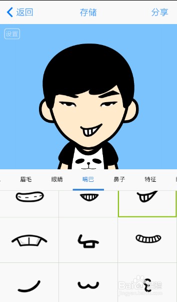 --脸萌还提供特征、爱好、表情、气泡等具有特色的素材类别,用户可设计专属的动漫头像,并通过文字气泡选择或输入文字,表达心情。