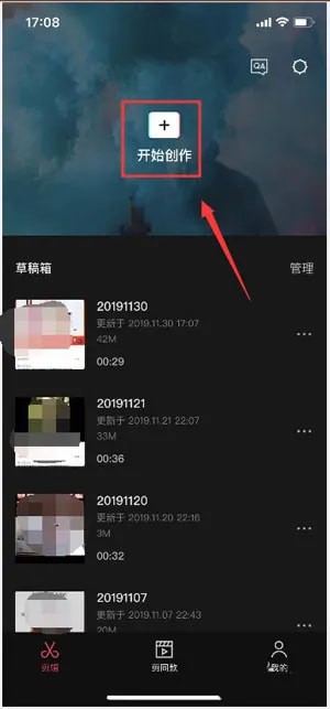 1.首先打开手机中下载安装好的剪映APP ,在【剪辑】页面点击【开始创作】开始剪辑视频;