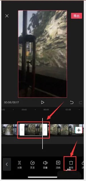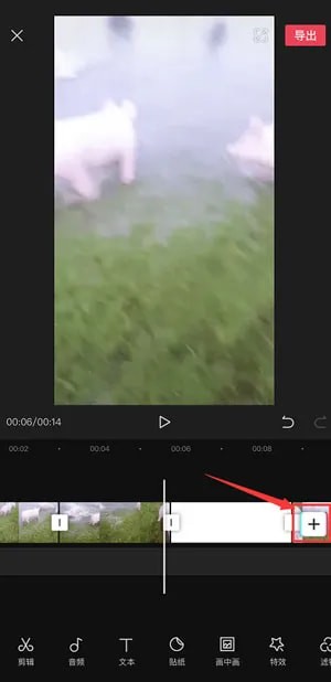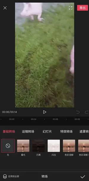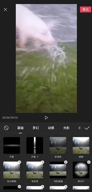 4.使用下方的所有功能之后,达到自己想要的效果之后,点击右上角的【导出】可以将剪辑好的视频保存到相册中;