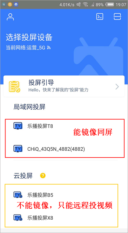 专业投屏软件工具大多数用户是选择镜像模式投屏,就是直接把手机整个屏幕同屏到电视,同屏成功后,不管你打开的是能够APP还是哪个视频地址,电视都会实时地显示。还有就是投屏之前检查手机和电视是否连接同一个wifi,确定好这个条件后,就可以打开专业投屏软件工具搜索自己需要投屏到哪个设备上(一般是电视),搜索到后点击投屏即可(下图上乐播投屏工具页面)
