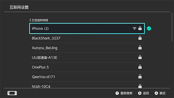 在Switch的互联网设置页面中,选择“热点网络”进行连接。如果是第一次连接,可能需要输入密码。连接成功后,在“已添加的网络”中选择你的热点网络。