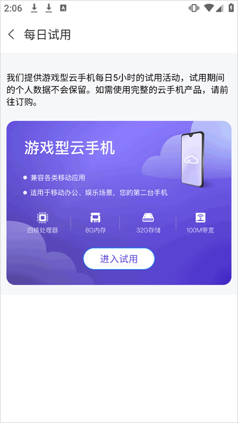 游戏型云手机每日5小时的试用活动,试用期间的个人数据不会保留
