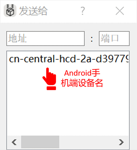 点击“发送”按钮后,在出现的设备列表中选择你的手机设备名称。