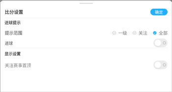 在设置页面中,找到比分提醒的开关选项(通常位于右侧),点击该开关即可开启比分提醒功能。