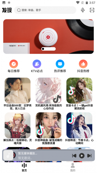 2、音乐搜索:利用搜索用户可以快速的找到音乐,保证能获取音乐真是的魅力。
