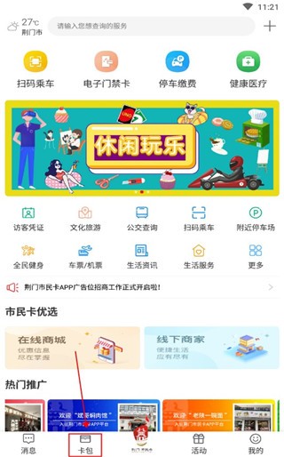 登录后,在首页找到并点击“卡包”选项,进入卡包中心。