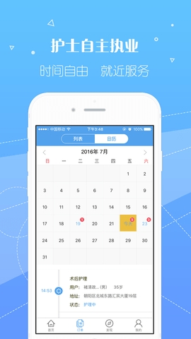 《派单方式》根据你所在位置就近分配,以抢单的先后顺序来决定抢单护士