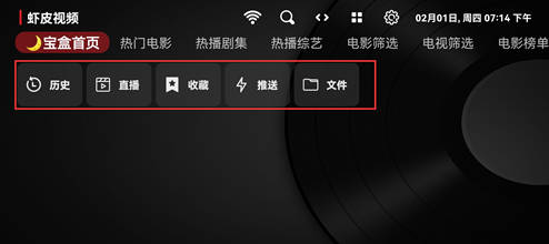 1、下载安装好软件后,点击进入首页,在首页,有各种观看历史/直播/收藏/推送等不同栏目功能;