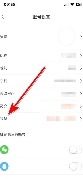 在账号信息设置页面中,找到并点击【兴趣】选项。这个选项允许用户设置自己的影视兴趣,以便APP能够更准确地推荐相关内容。