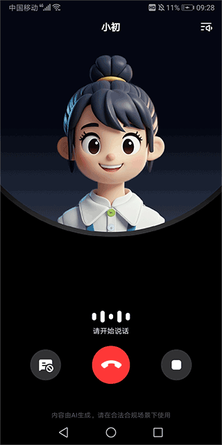 4、还有ai数字人小初与你进行电话式ai创作辅助,就像你平时打电话访问朋友一些事一样