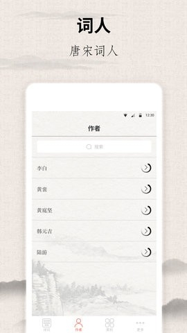 4、支持宋词搜索功能,无论搜索作者还是诗词名称,都可以精准搜索到。