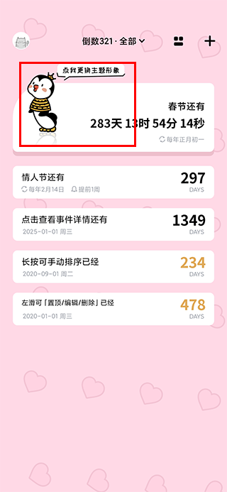-事件置顶:将特别重要的日子置顶展示,确保不会错过。