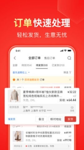 拼多多商家版是一款非常好用的手机版拼多多店铺管理平台,在这里0保证金开店,新商家专享200元推广红包,亿万买家触手可及,账户资金极速提现,经营数据一手掌握,超级方便好用,快来下载使用吧!