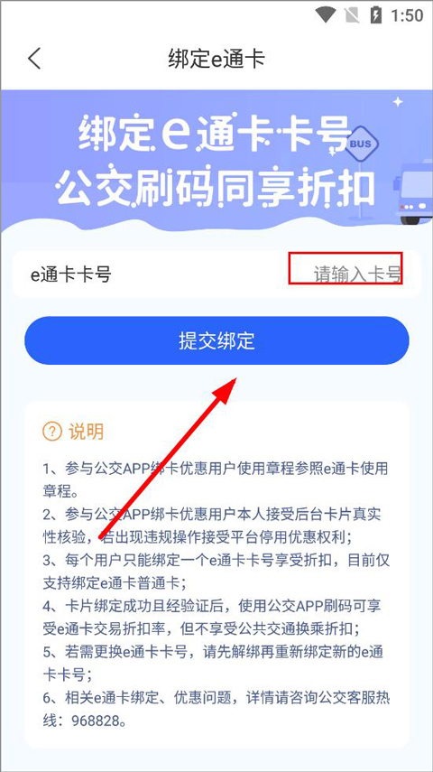 3.选择并绑定e通卡: 在卡券包页面中,找到“e通卡”选项并点击它。接着,你会进入一个关于e通卡绑定的页面,这里会有相关的绑定说明。按照说明,输入你的e通卡卡号,并点击提交按钮进行绑定。