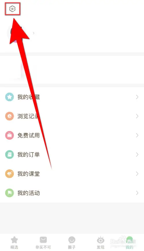 1、在个人中心,我们点击左上角的“齿轮”图标。