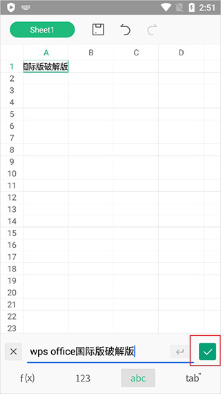 在新建的表格中,点击想要输入内容的单元格,然后输入您想要的内容,并点击旁边的“√”确认。