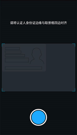-按照提示,先将老人的身份证对照取景框,点击蓝色按钮拍照以识别身份证号码。