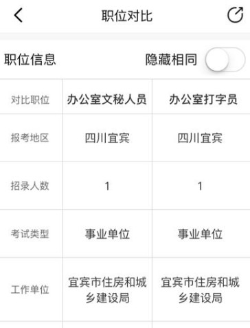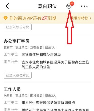 7.开始对比:选择好要对比的职位后,点击右上角出现的VS图标,进入对比界面。