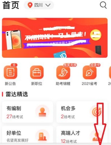 首先,打开你的公考雷达APP,进入首页。