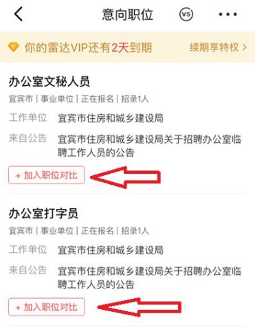 6.职位对比:在意向职位列表中,对感兴趣的职位点击【加入职位对比】,将它们添加至对比列表。