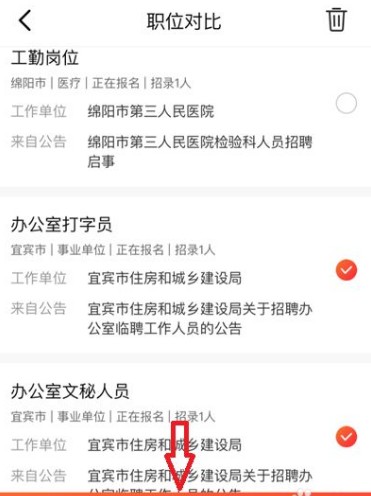 8.筛选职位:在对比界面中,通过点击右侧的小圆圈选择要比较的职位,然后点击【开始对比】,仔细查看各职位的异同,以便进行筛选。