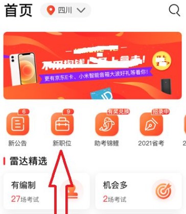1.打开公考雷达APP: