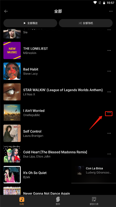 2.打开歌曲操作菜单:找到你想要收藏的歌曲,并点击其后面的“...”按钮以打开操作菜单。