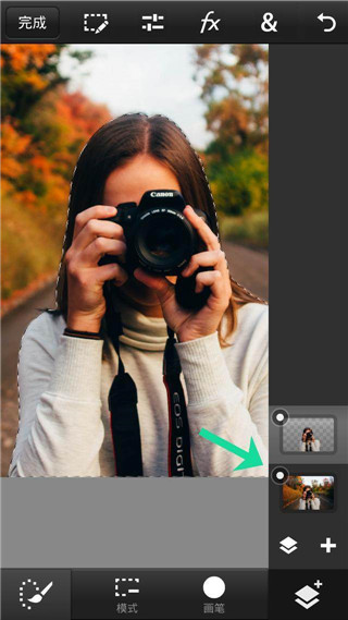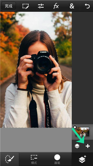 5.新建图层:选择图层按钮,再点击增加图层按钮,选择选区图层以新建抠好人物的图层。