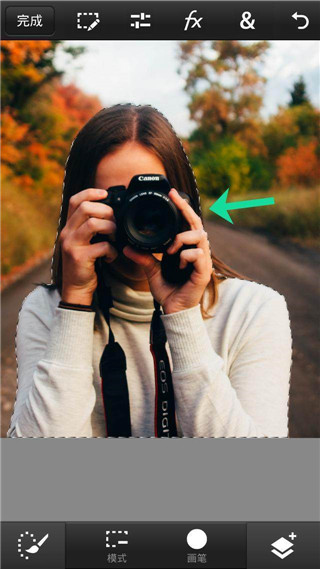 3.精细选择:双指缩放照片,调整笔刷大小,精确选择选区。