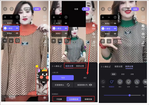 在画面设置中进行美颜调整,提升主播形象。