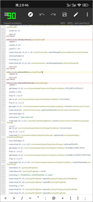 打开该文件,并搜索thod private setScreenEffect(/String;II)V这段代码。
